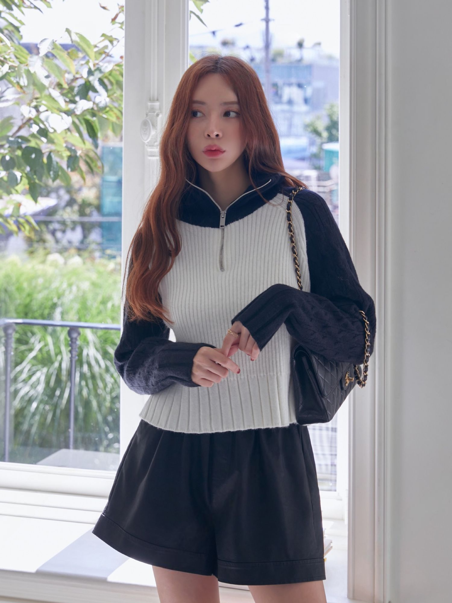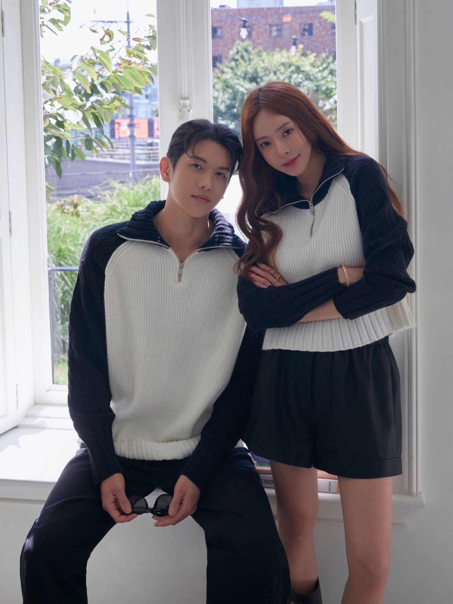 商品列表:半拉鍊針織上衣x1、半拉鍊短版針織上衣x1