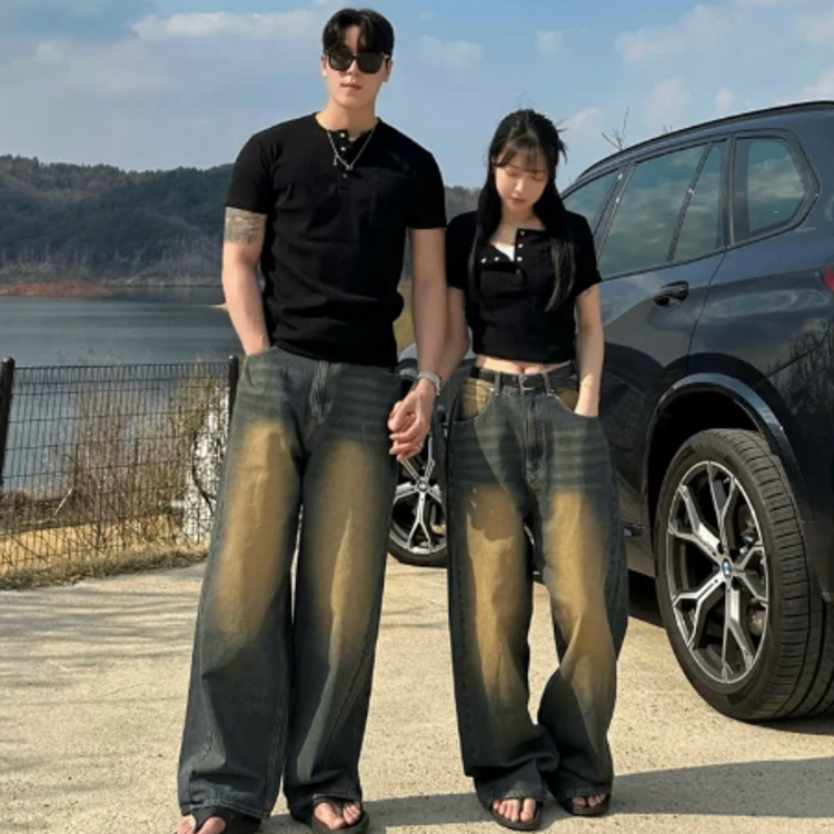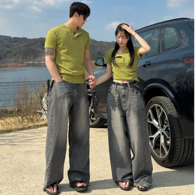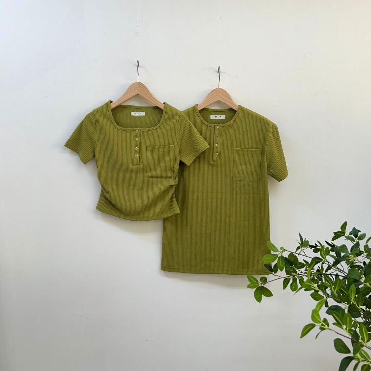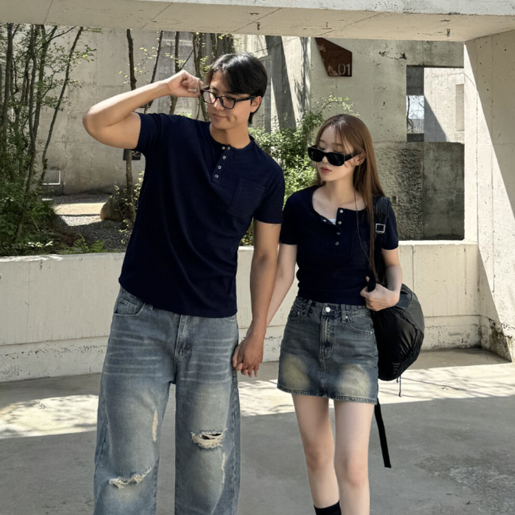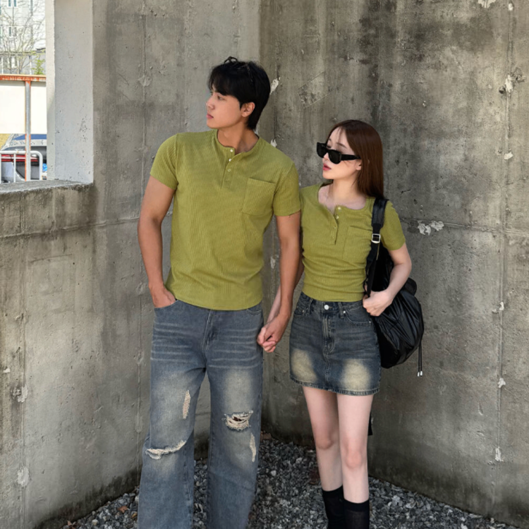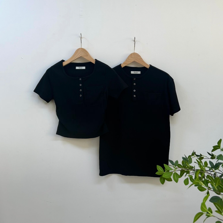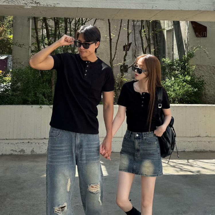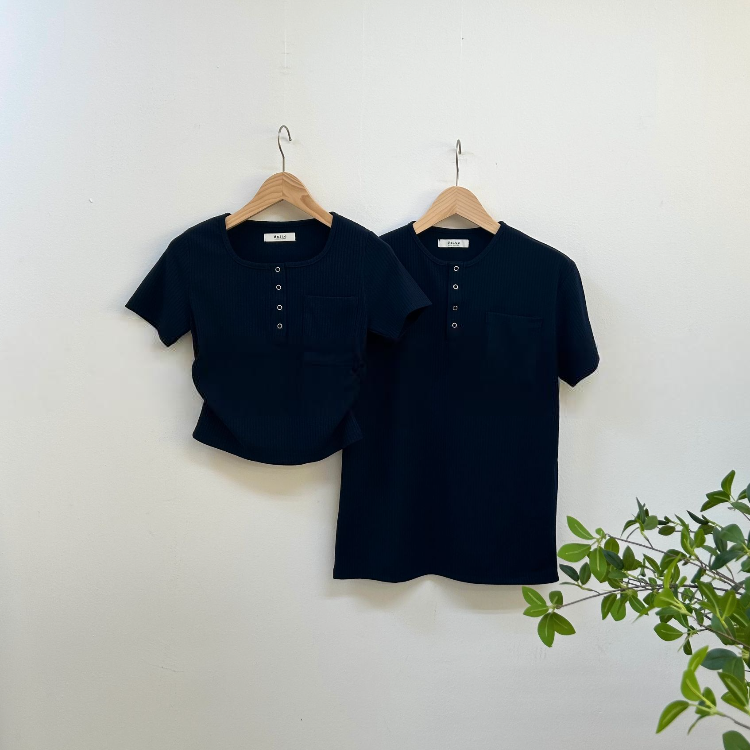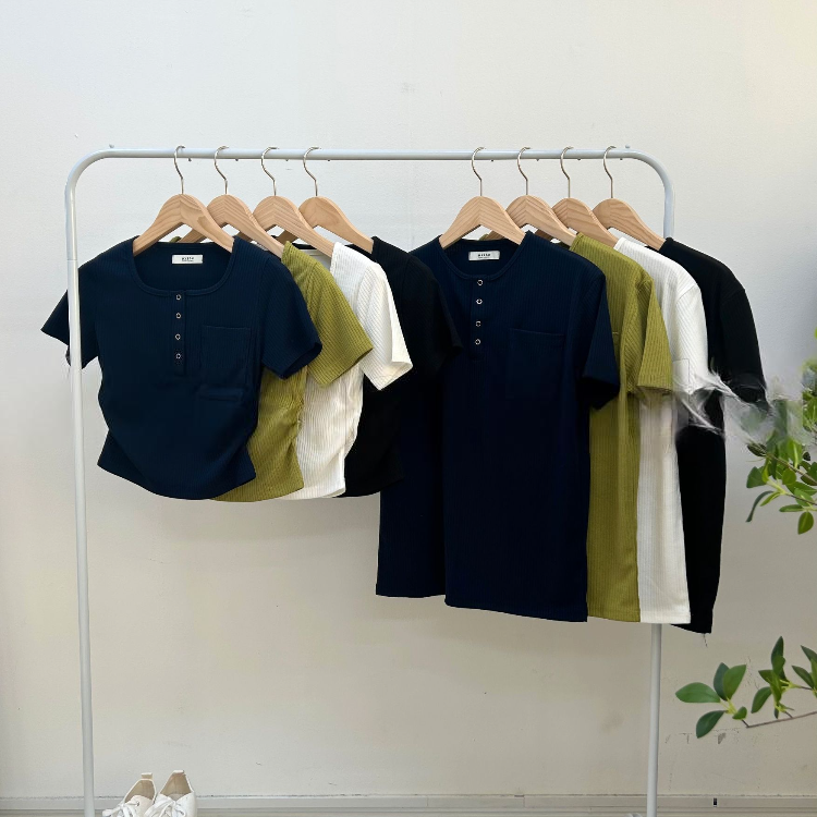 按扣羅紋T恤情侶裝