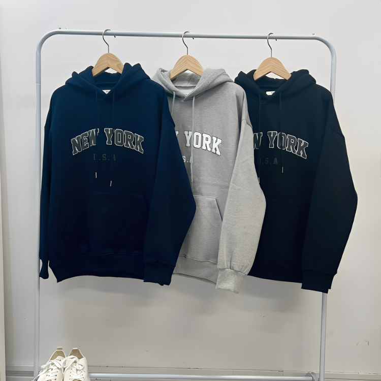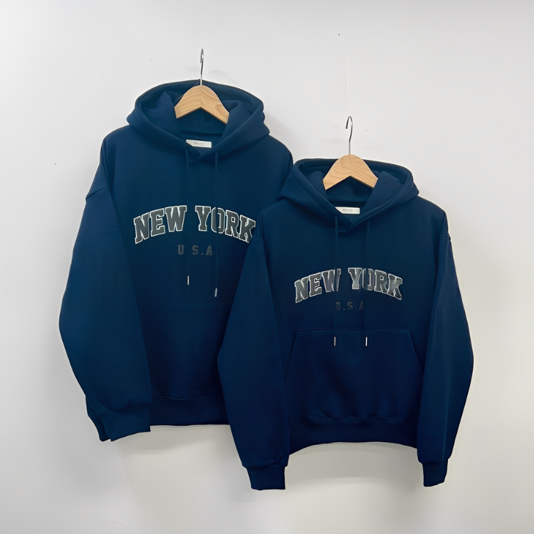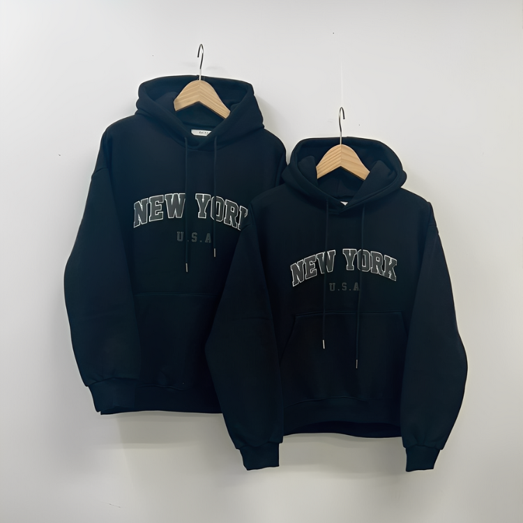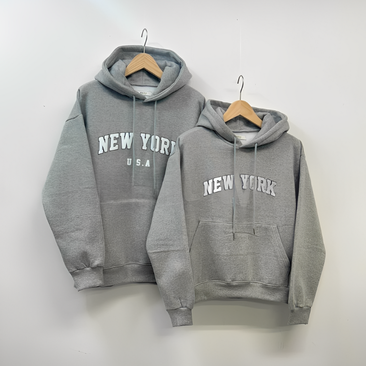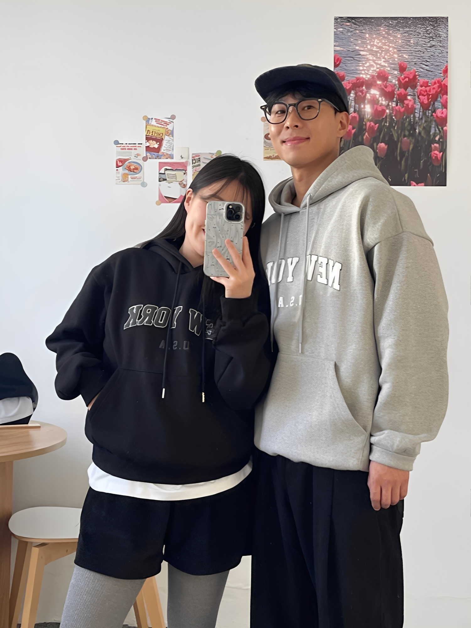 質感立體壓紋打破了素色的單調,搭配寬鬆的落肩剪裁,讓情侶穿搭在視覺上充滿了包容力。