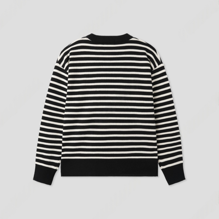 以經典黑白線條點綴溫柔圓領,